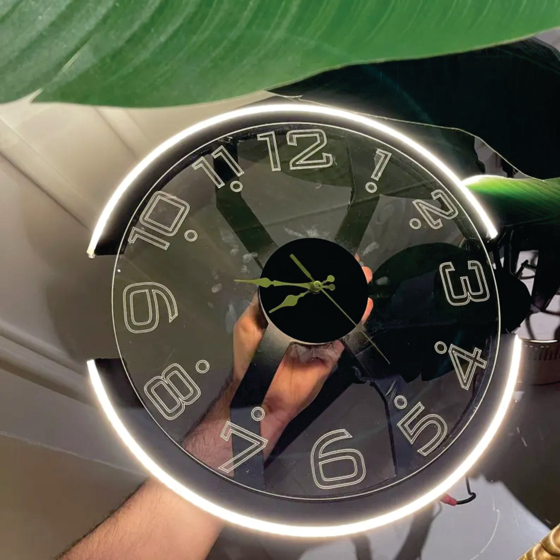 Neon Modern Wall Clock - Large Minimalist Glow-in-the-Dark Wall Decor