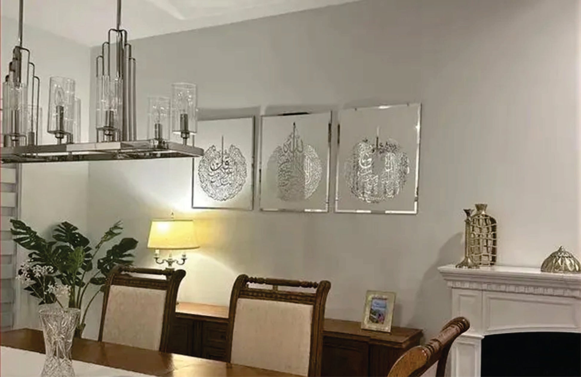 This exquisite set of three wooden Islamic wall art pieces features Ayatul Kursi, Surah Al Falaq, and Surah An Nas, carefully crafted to enhance your home decor. Each panel showcases beautifully inscribed calligraphy that adds spiritual significance and a serene aesthetic to any space. Designed for durability and elegance, these artworks bring a meaningful touch of faith into your living environment while complementing modern and traditional interiors alike. Ideal for those seeking a refined way to display their devotion and create a tranquil atmosphere.